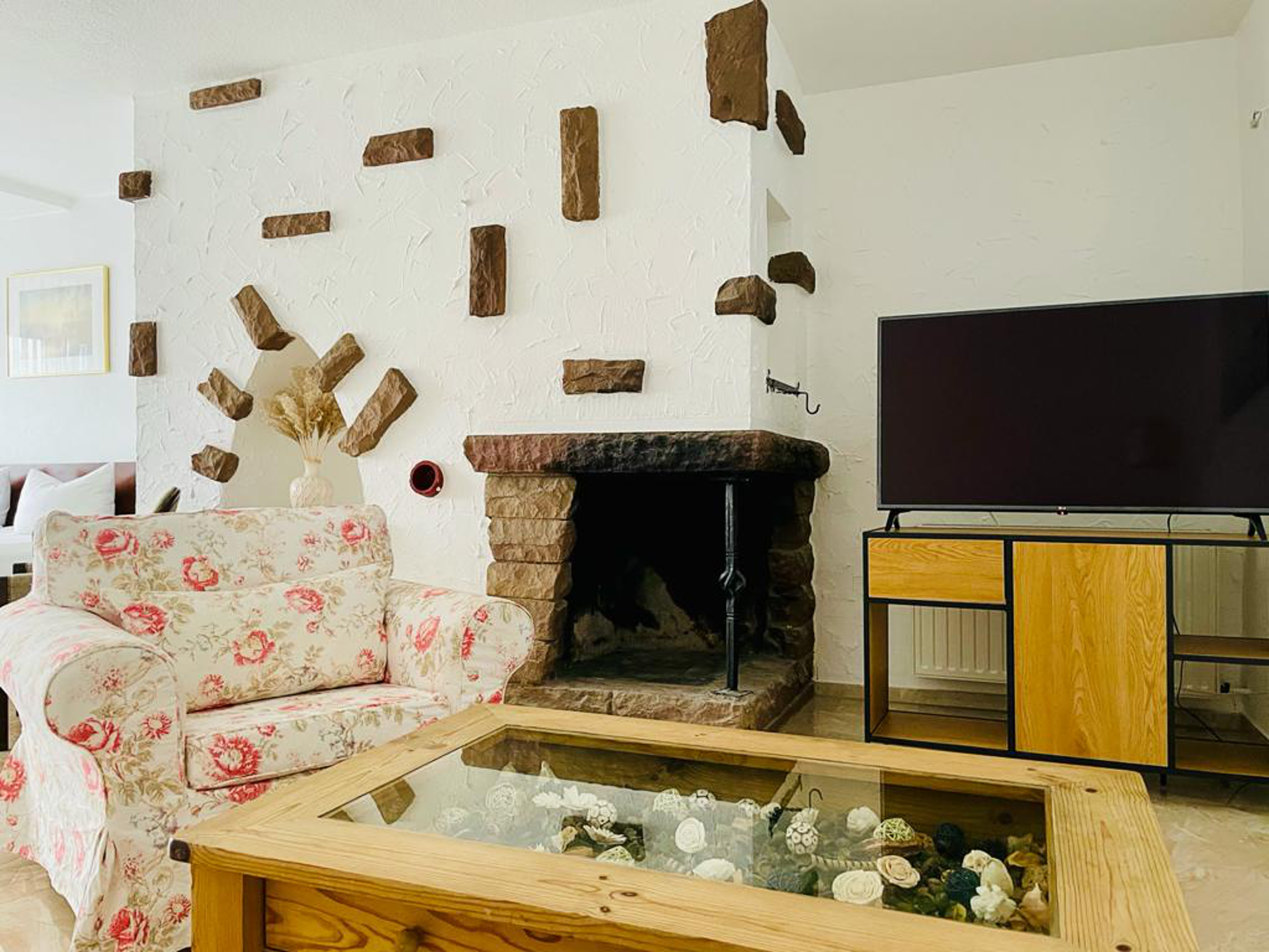 Kaminecke | Badezimmer mit Dusche | Bettgröße 190 x 200m | schalldichte Fenster | gefließter Boden | Wasserkocher...